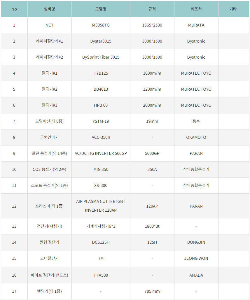 · 주요 설비 LIST